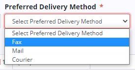 In the Preferred Delivery Method field, select Fax, Mail or Courier. Once all required details are entered, click Save Physician.