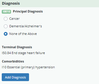 Once saved, the assessment will be updated with the new diagnosis information. This data will also flow to the Initial Plan of Care or Recertification Plan of Care once the assessment has been approved in the QA Center.