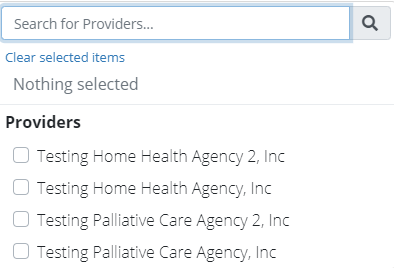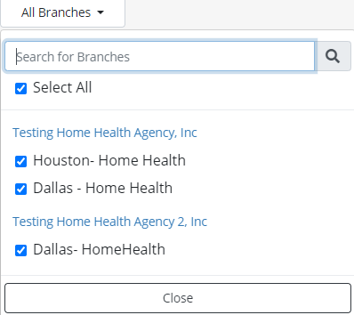From the Branch filter, users can select branches individually or click on a provider name to select all branches associated with the provider.