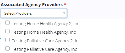 When adding or editing entries on the following lists, users will be required to select the associated agency providers: