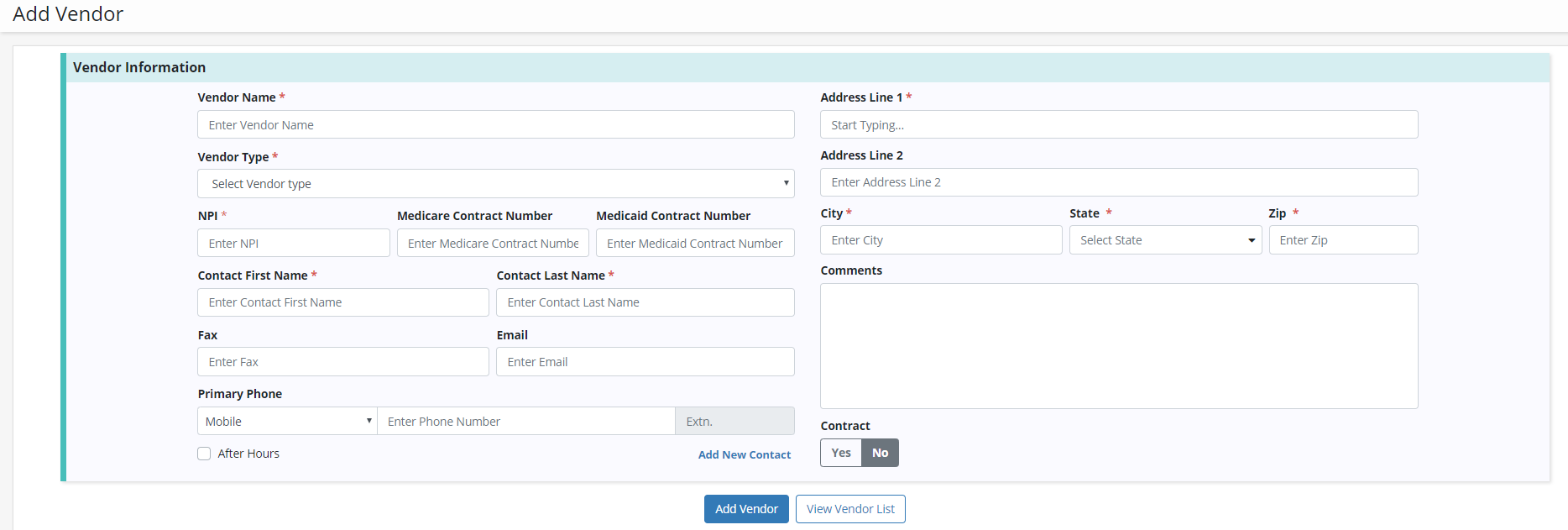 The Add Vendor form will open in a separate browser tab so that you do not lose your place in the referral. Once the vendor has been added, close the browser tab to return to the referral. The new vendor will immediately be available to add to the referral.