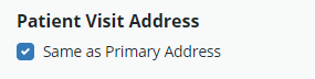 By default, the Same as Primary Address box is checked for the visit address. If the visit address is different from the primary address, deselect the box and enter the patient’s visit address.