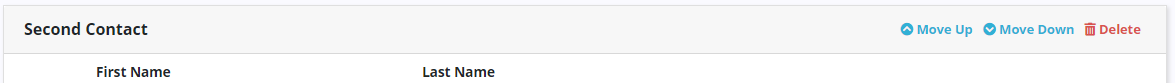 Up to ten contacts can be added for a patient. Click Add Additional Authorized Contact to add contacts. To remove a contact, click Delete. To update the order of the contacts, select Move Up or Move Down.
