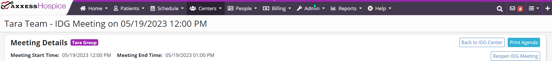 Axxess Hospice now enables users to reopen a closed Interdisciplinary Group (IDG) meeting. This enhancement streamlines operations by enabling users to add, remove and change patient information to ensure the IDG meeting contains all necessary information.