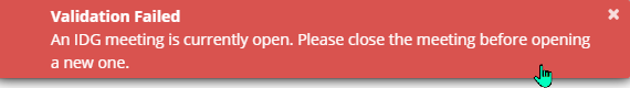 Only one IDG meeting can be open at a time. The following message appears when an IDG meeting is open and a user tries to open another meeting at the same time.