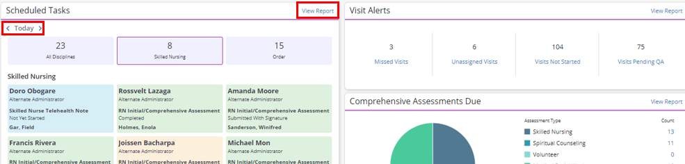 Users can also access the Scheduled Tasks report by selecting View Report or the selected date on the Schedule Dashboard under Scheduled Tasks.