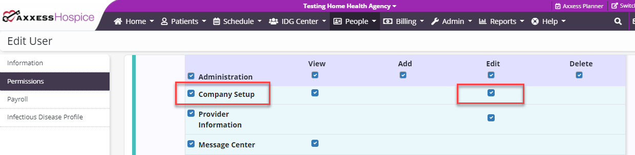 To access this feature, users must have permission to edit Company Setup information in Axxess Hospice.