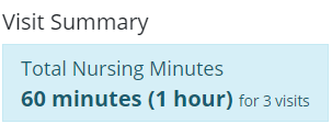 When the parameters are applied, the total nursing minutes will display in the Visit Summary section.