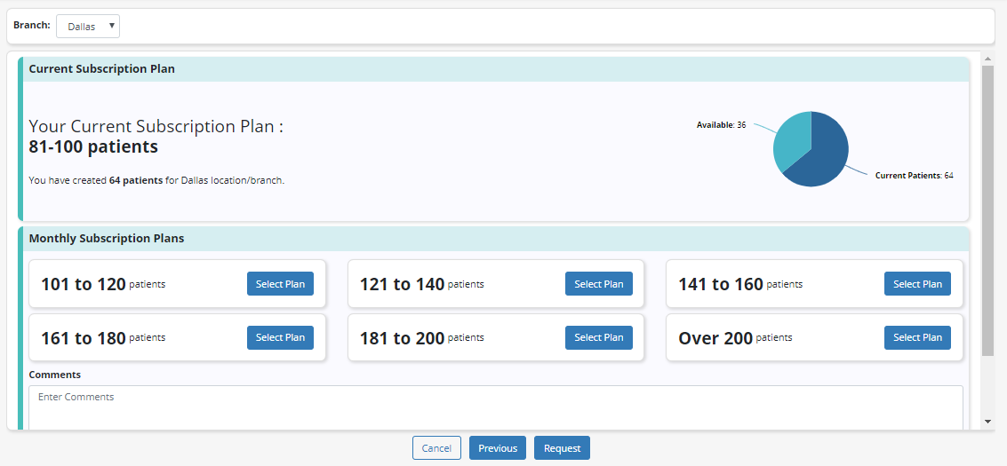 Monthly Subscription Plans ➜ Select Plan ➜ Enter any comments ➜ Request ➜ Enter your electronic signature