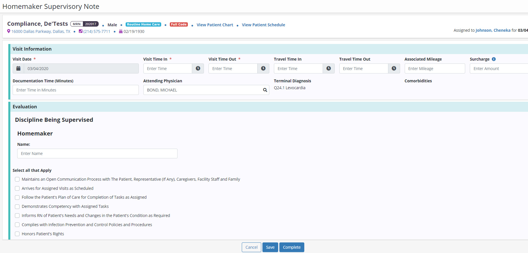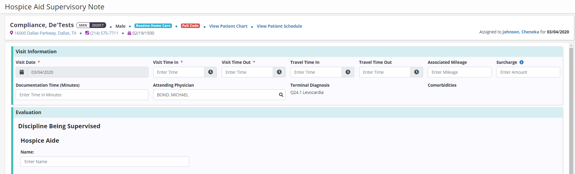 Once documentation in a Skilled Nurse Visit is complete, the Supervision section appears at the end of the visit note. Skilled Nurse Visit Note ➜ Supervision section