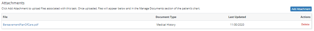 Any attachments added to a task will appear in the task’s details and the Manage Documents section of the patient’s chart.