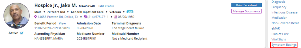 Patients tab ➜ Patient Charts ➜ Quick Links ➜ Symptom Ratings
