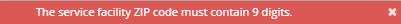 If a 9-digit ZIP code is not entered when verifying a claim, the system alerts the user with a red error message at the top of the screen.